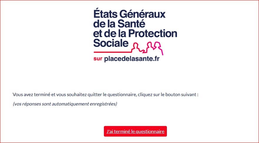 ► A NOTER : pour valider vos réponses une fois le questionnaire terminé, n’hésitez pas à scroller pour cliquer sur le bouton « J’ai terminé le questionnaire » tout en bas de page après le logo de Place de la Santé.