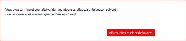 ► A NOTER : à cette étape, pour valider vos coordonnées et votre questionnaire, il vous faudra cliquer sur le bouton « Aller sur le site Place de la santé »