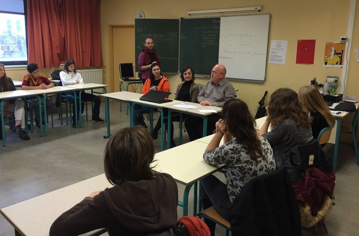 Pour éclairer les jeunes collégiens sur la notion d’engagement solidaire, deux exemples concrets leur ont été présentés au mois de février : Jean-Pierre Gilet, administrateur de la Mutualité Française Pays de la Loire a exposé les valeurs de solidarité et d’engagement bénévole qui fondent la raison d’être du mouvement mutualiste et de ses militants ; l’association Unis-cité d’Angers a ensuite expliqué les missions qu’elle proposait dans le cadre du service civique avec le témoignage de Ludie, jeune bénévole au sein d’Unis-cité.