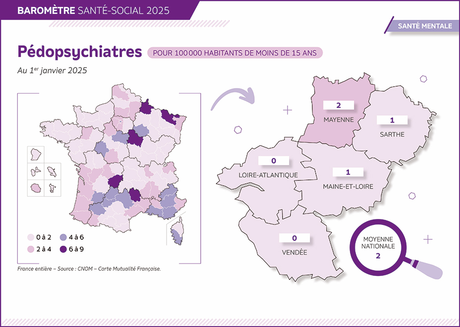 0.8 pédopsychiatre pour 100 000 habitants de moins de 15 ans en Pays de la Loire (2 en France)