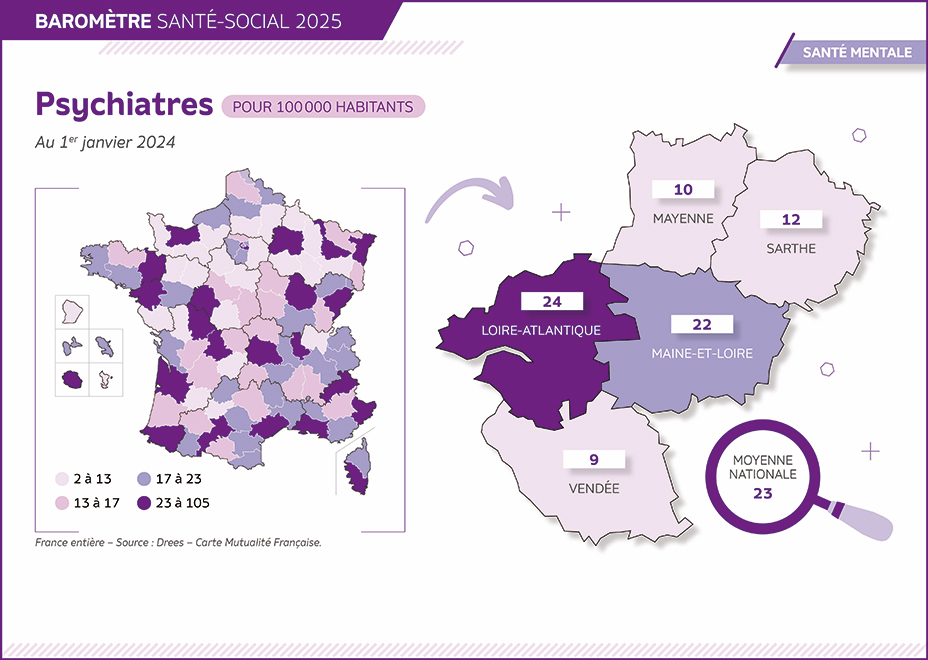 15,4 psychiatres pour 100 000 habitants en Pays de la Loire (23 en France)